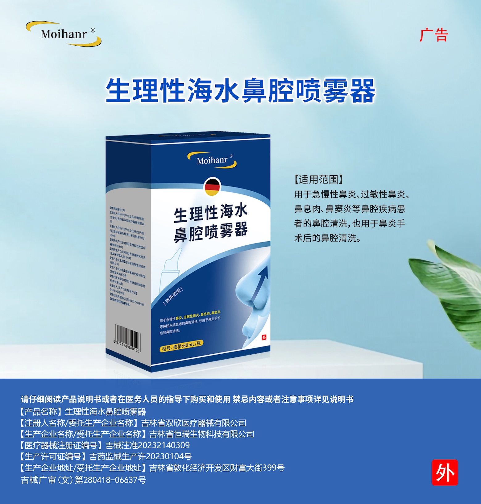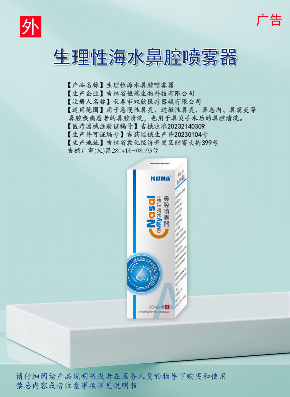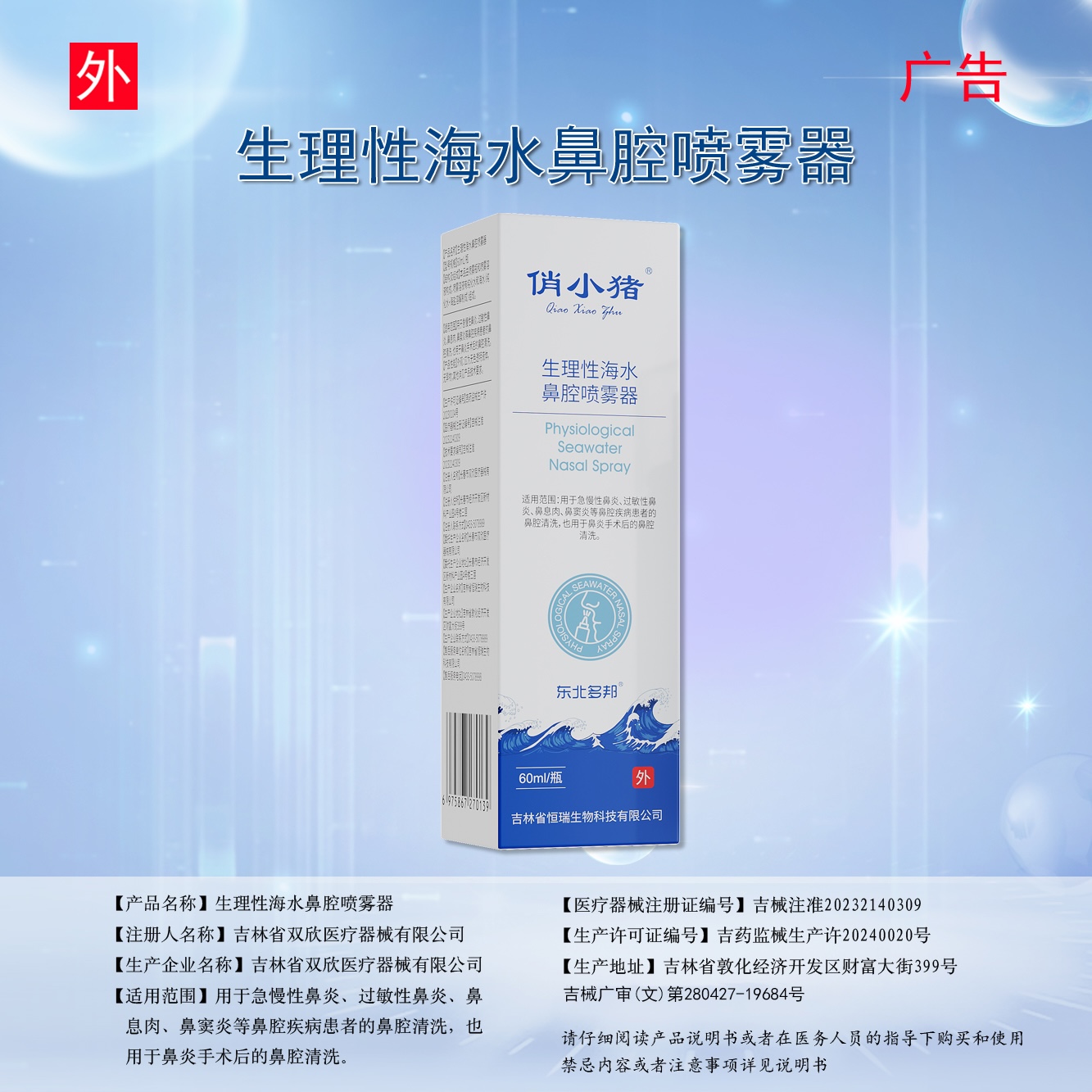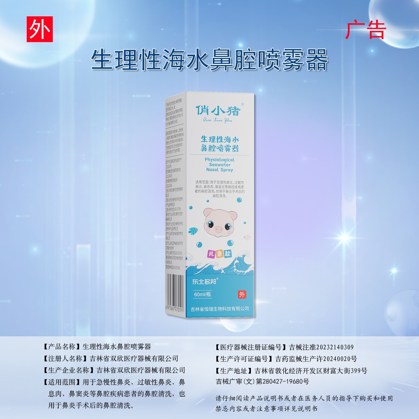 【适用范围】用于急慢性鼻炎、过敏性鼻炎、鼻息肉、鼻窦炎等鼻腔疾病患者的鼻腔清洗,也用于鼻炎手术后的鼻腔清洗。