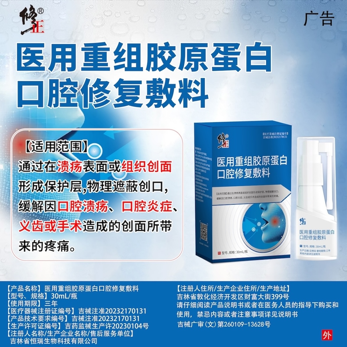 【产品名称】医用重组胶原蛋白口腔修复敷料