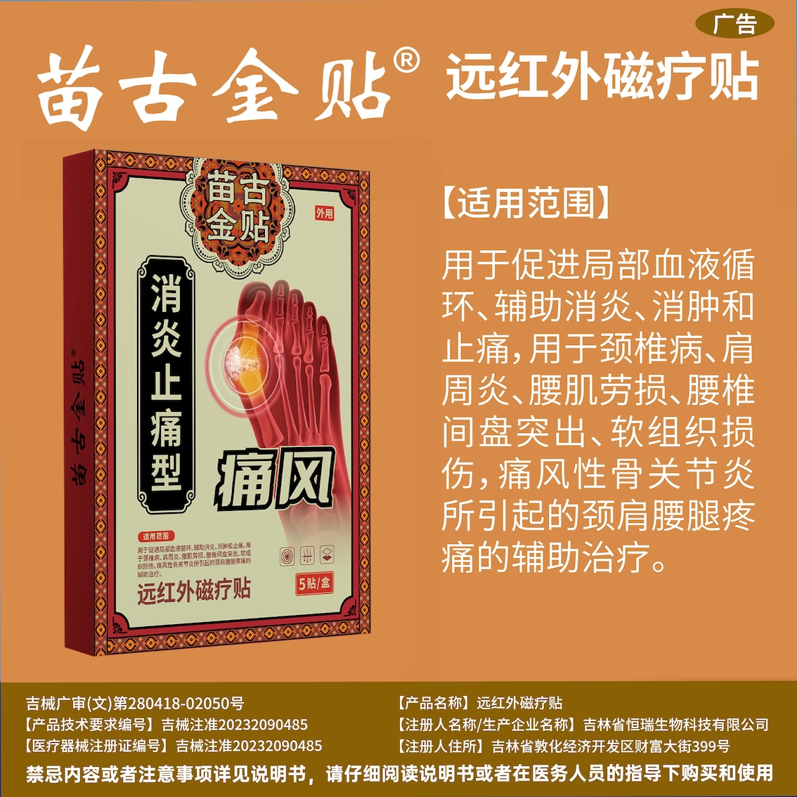 【适用范围】用于促进局部血液循环、辅助消炎、消肿和止痛,用于颈椎病、肩周炎、腰肌劳损、腰椎间盘突出、软组织损伤,痛风性骨关节炎所引起的颈肩腰腿疼痛的辅助治疗。
