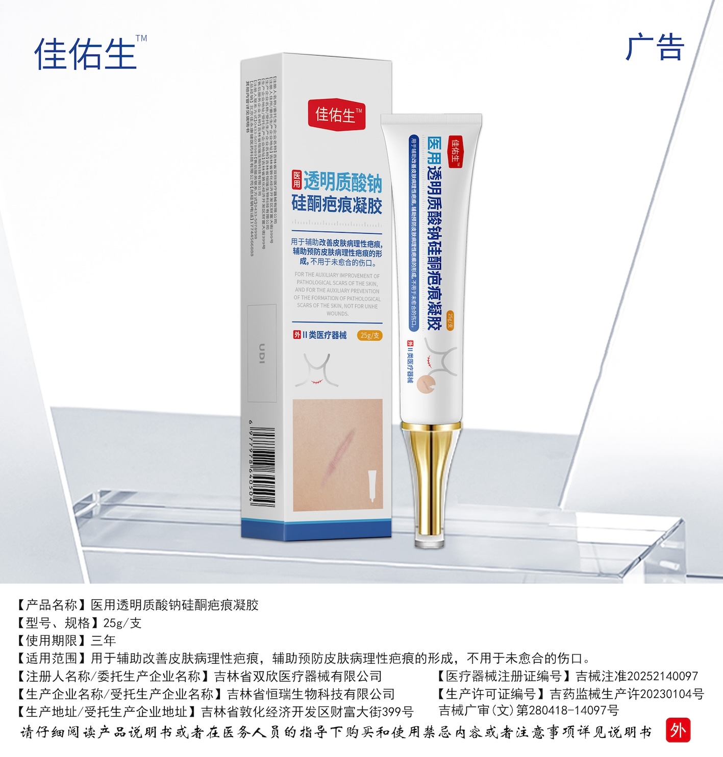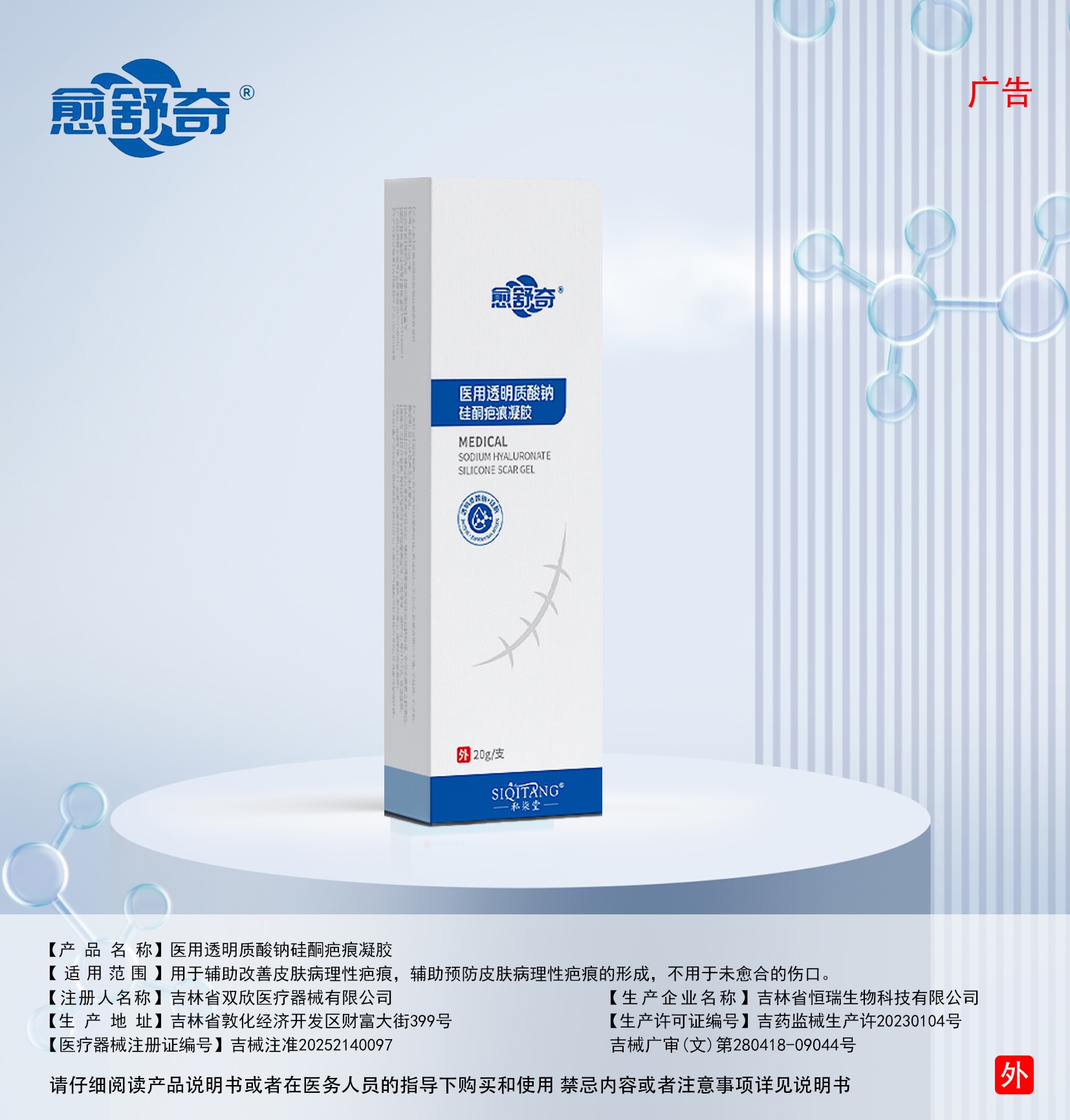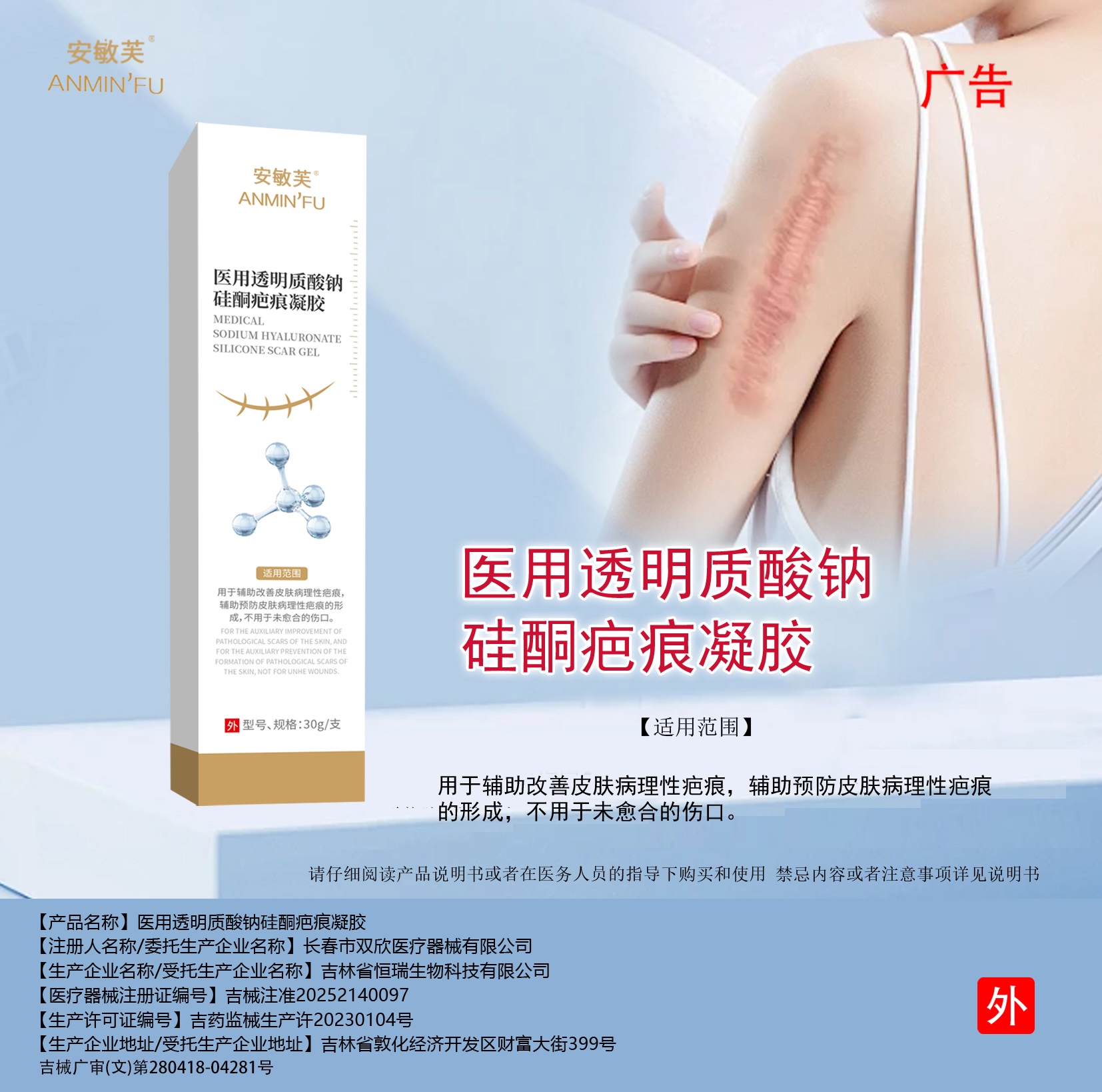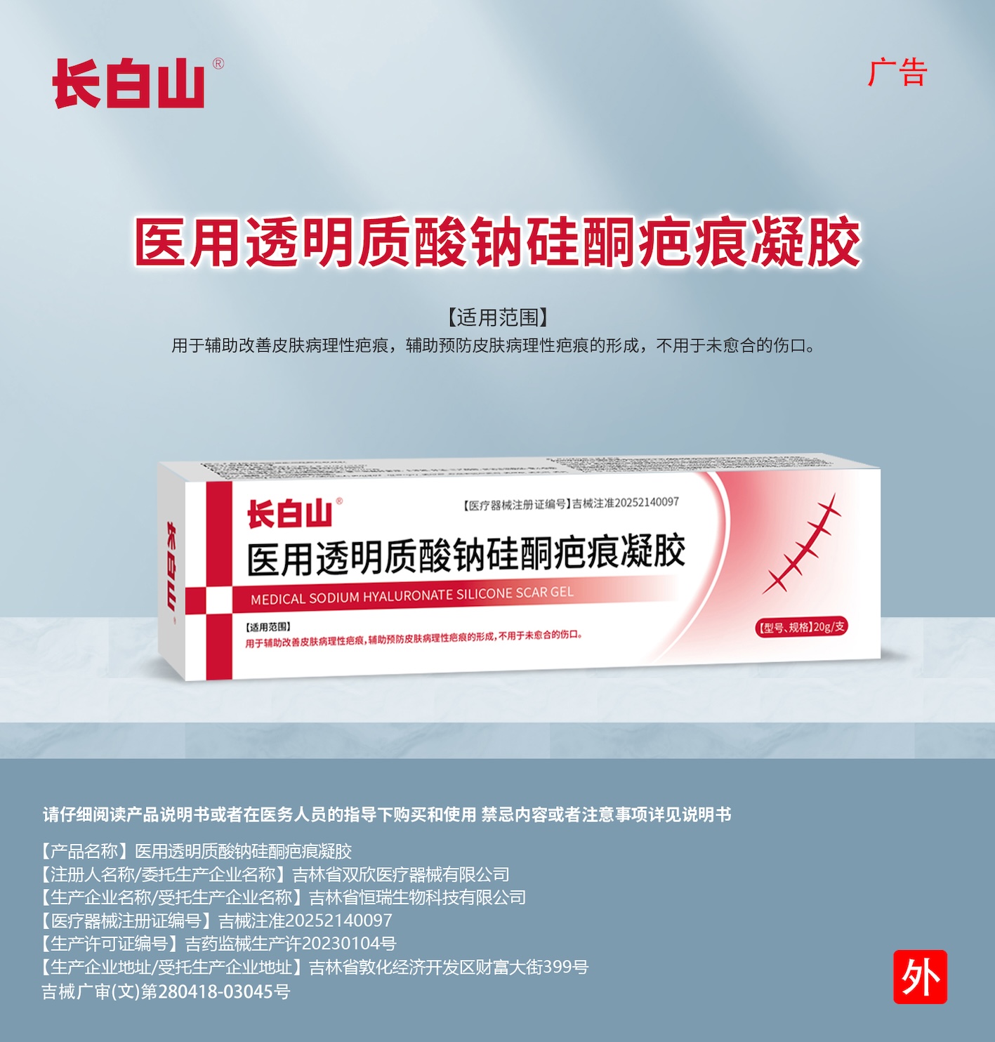 【产品名称】医用透明质酸钠硅酮疤痕凝胶